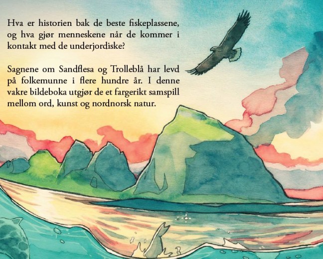 Sandflesa og Trolleblå handler om to kjente fiskebanker ved Træna, det første finnes i Asbjørnsen og Moe Folkeeventyr, det andre er mindre kjent. Sonja Langskjær, billedkunstner fra Træna, har laget 18 helsides illustrasjoner i boka. Vi har sammen med flere andre bidratt til å forevige to kjente sagn fra Helgelandskysten.