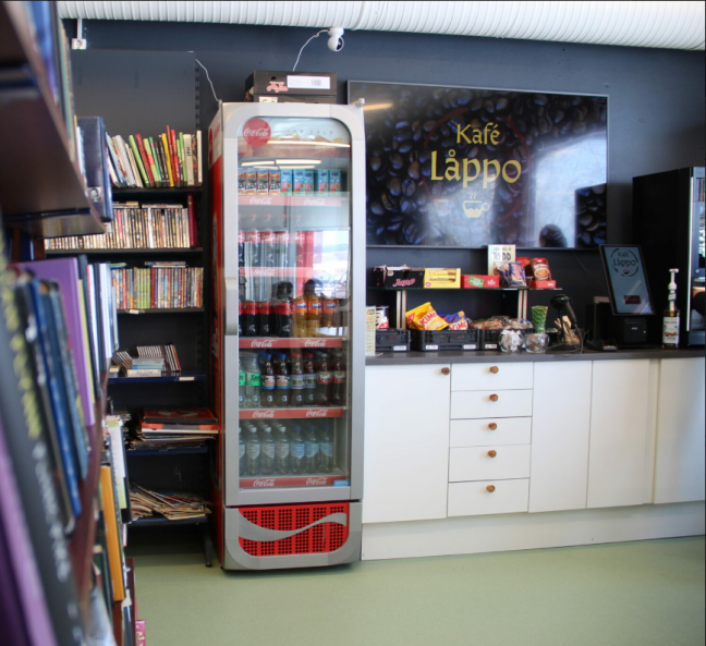 Kafeen blir en selvbetjenings kafé a’la slike du finner på ferjene i distriktet. Det betyr at vi ikke skal produsere noe av varene selv, men selge ulike ferdigproduserte muffins, lefser og diverse kioskvarer. En liten krok der du kan ta en god pause fra shoppinga.